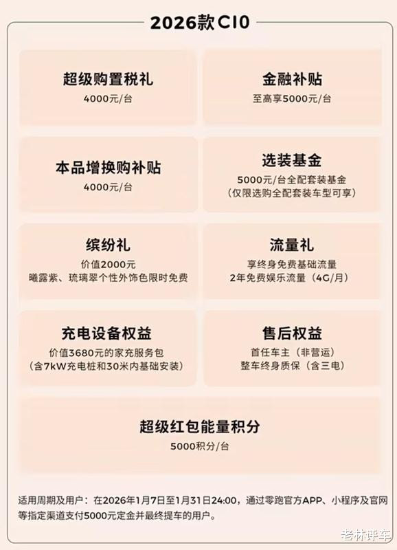 综合来看,这三款车的实力都很强,不过在动力输出、续航里程、快充时间、操控体验、乘坐体验、配置和功能等方面,零跑C10的表现都很亮眼,而且它还有4000元的购置税补贴、4000元的增换购补贴、2000元的个性外饰色、2年免费娱乐流量(终身基础流量)、首任车主终身质保(含三电)以及赠送3680元的7kW充电桩(含30米内安装)等购车权益,买车时,真的可以考虑一下零跑C10。最后,对于这三款车型,您有什么看法?