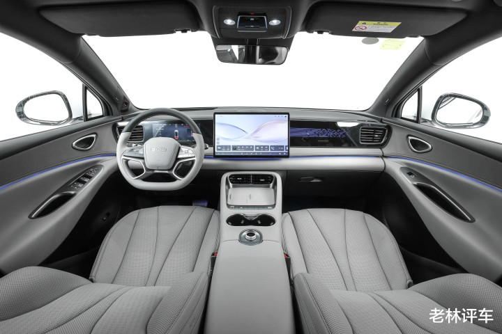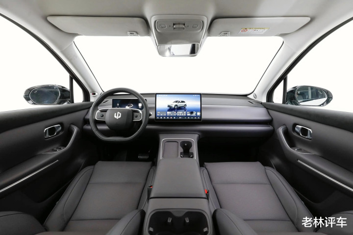 内饰方面,如果把方向盘挡住了,这三款车是不是很像?其实它们都采用了新能源汽车很主流的简约风格,视觉中心就是中控屏幕,而且它们都采用了电子怀挡的换挡机构,不会占用前排地台的空间。