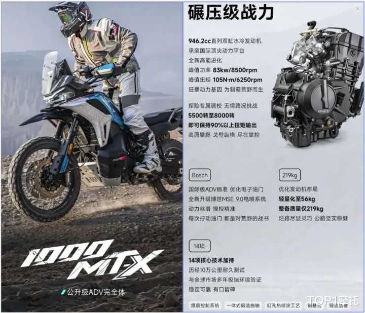作为2026年即将上市的车型当中,“最猛”的国产ADV车型,春风1000MT-X吸引了诸多ADV爱好者的关注,在ADV领域当中春风的表现非常不错,450MT持续畅销,800MT、800MT-X更是国产大排量ADV的顶梁柱,如今公升级的1000MT-X作为MT系列新旗舰,自然牵动着无数国内车友的目光。1000MT-X发动机数据